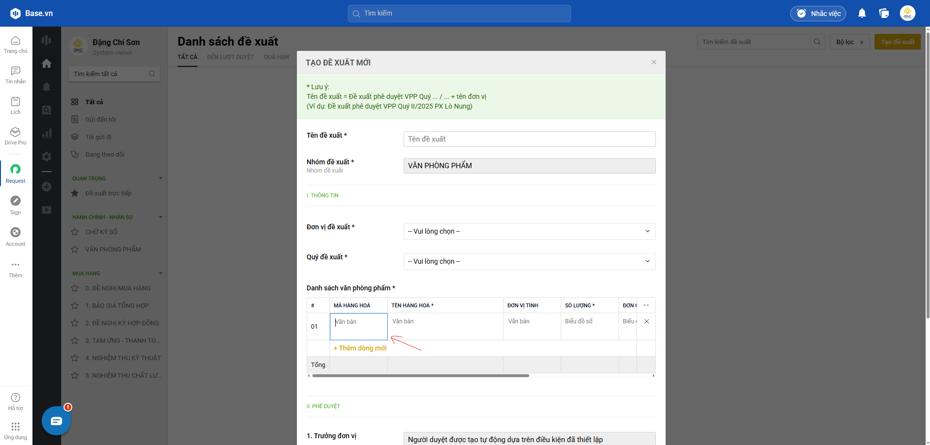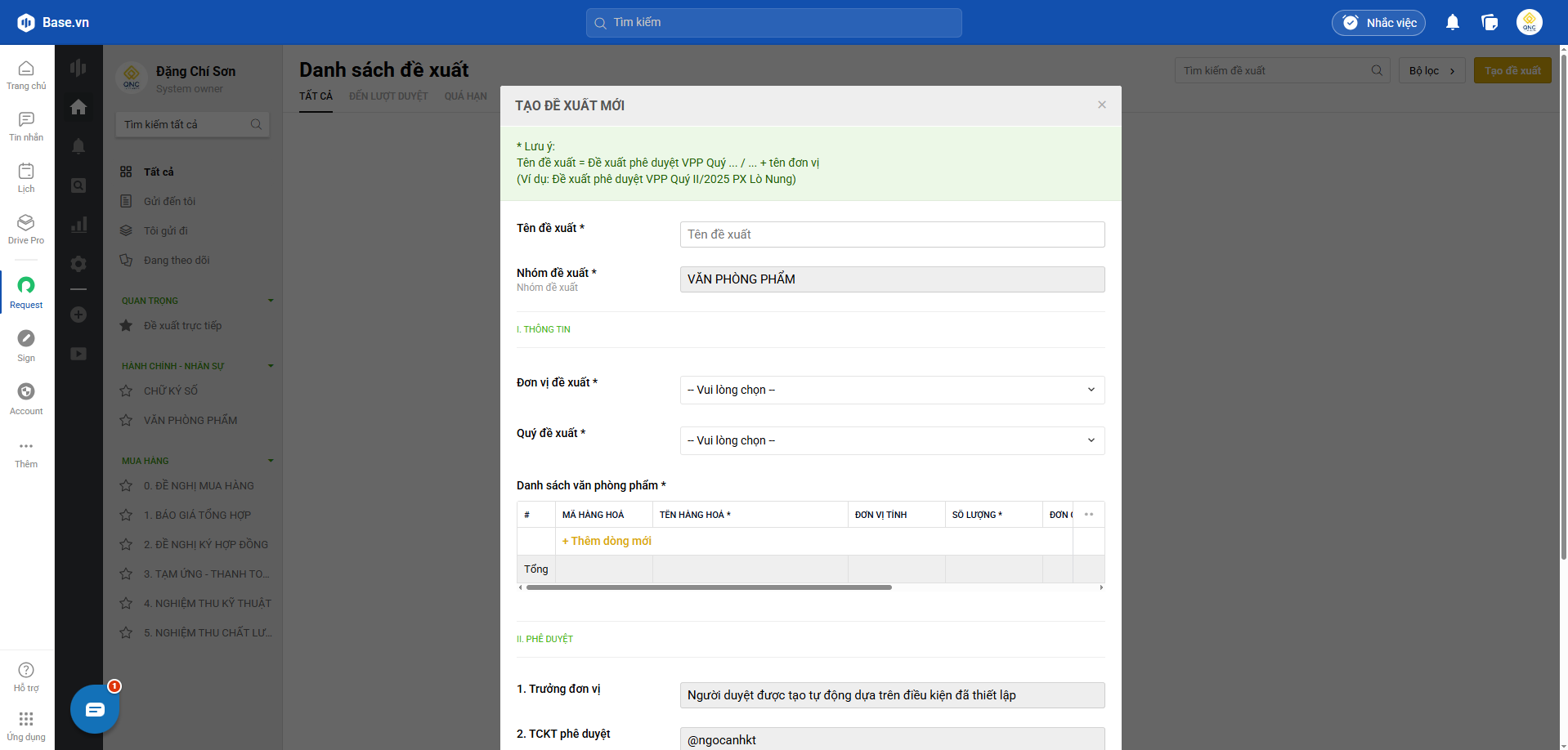 (Ví dụ: Đề xuất phê duyệt VPP Quý II/2025 PX Lò Nung)