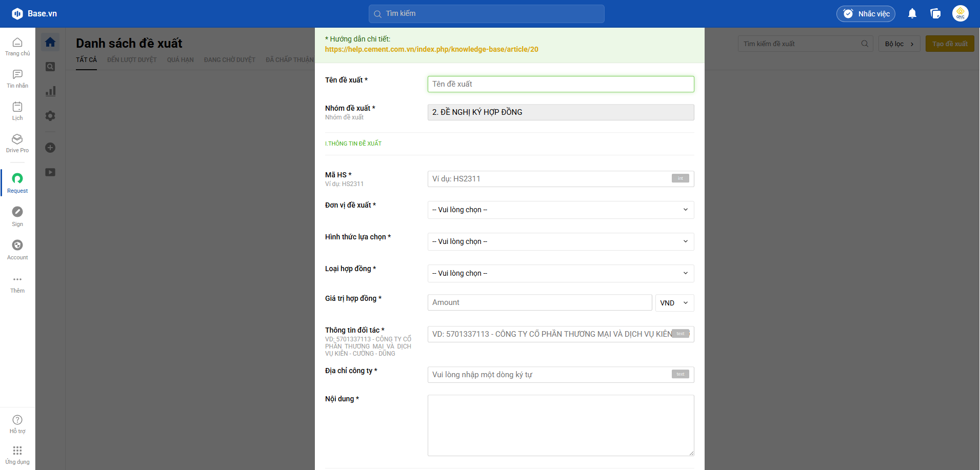 - Tên đề xuất: Đề xuất phê duyệt ký hợp đồng + ...