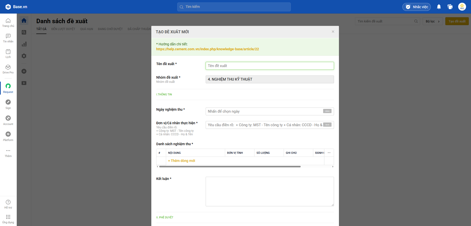 - Tên đề xuất: Đề xuất phê duyệt nghiệm thu kỹ thuật + ...